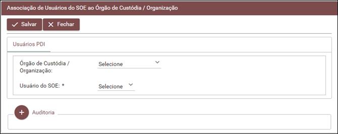 Clique neste botão para salvar a associação do órgão de custódia /organização ao usuário SOE. |