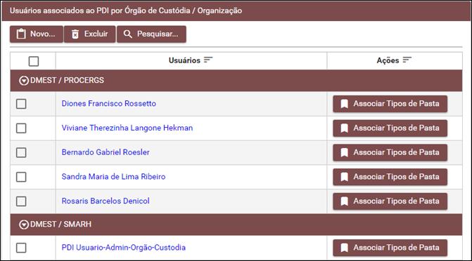 ao PDI por órgão de custódia/organização. Ou clique no botão Para mais informações consulte o tópico Nova Associação de usuário do SOE ao órgão de Custódia / Organização. |